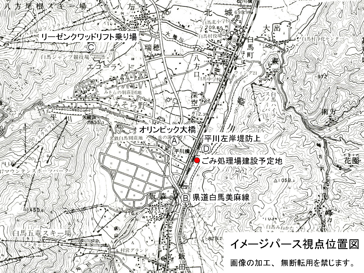 ごみ処理施設の建設候補地は、白馬の真ん中「白馬村飯森地区」と決定となった(行政資料)。